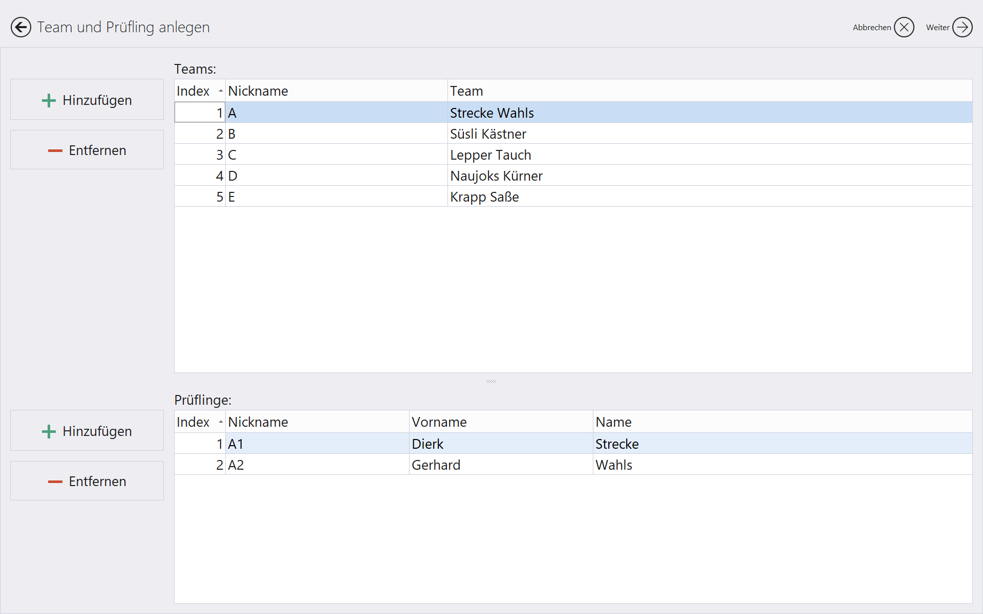 Hier wird der aktuelle Prüfer ausgewählt. Die Auswahl wird optisch und als Text angezeigt. Es können ein oder mehrere Prüfer vorhanden sein.